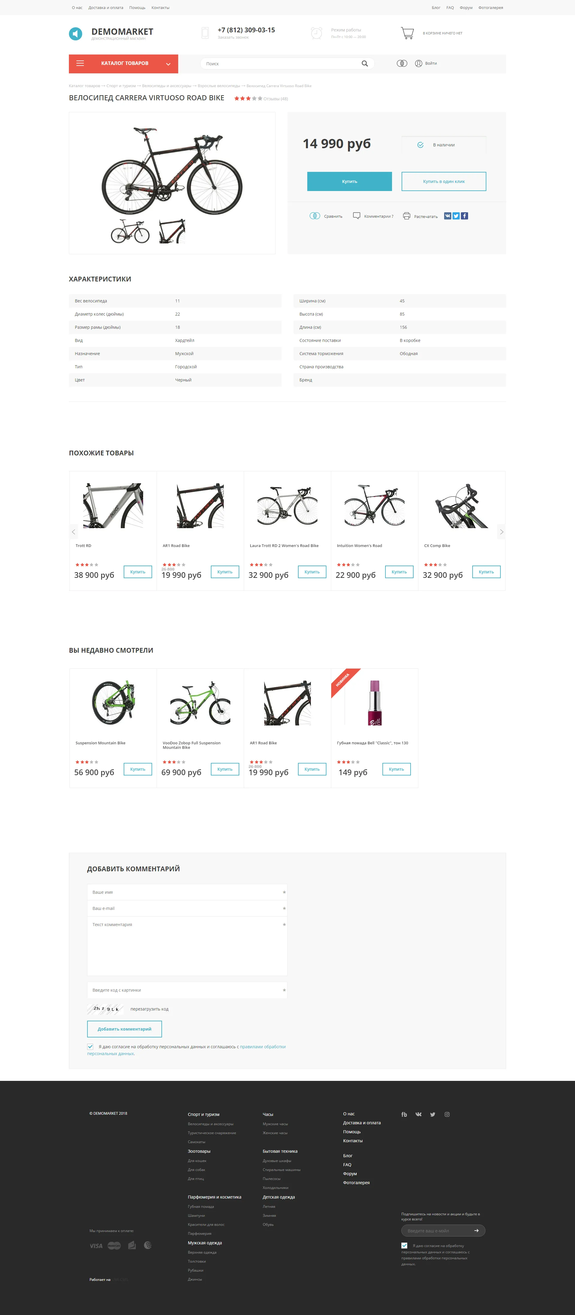 Полный набор инструментов для электронной коммерции: каталоги с гибко настраиваемыми свойствами товаров и фильтрацией, управление заказами, онлайн-платежи, доставка, конструктор скидок, статистика заказов, пересчёт валютных цен и др.